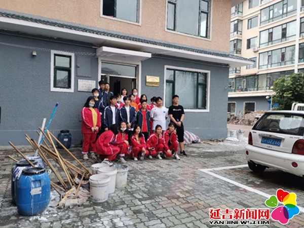 8月10日上午,来自市二中的20名学生志愿者来到长新社区,清扫楼道内粉刷后的污垢,助力创城。