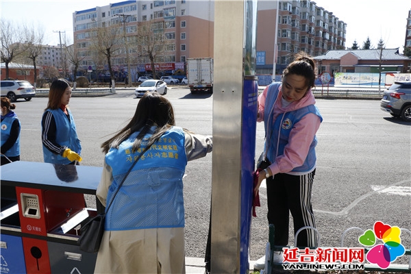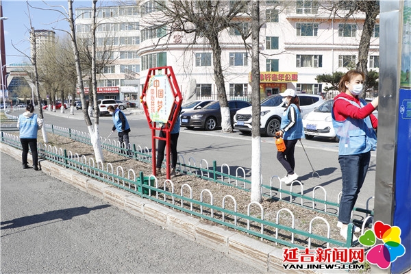 活动中,志愿者们沿着朝阳街对路面烟头、白色垃圾等情况进行集中整治。全体人员分为四个小组,一组对道路两侧的公交站牌进行集中清理,公交站牌经过长时间的风吹日晒,已经积存了厚厚的一层灰尘,志愿者们拿着抹布,弯下腰、踮起脚,用力擦拭着玻璃和金属边框的尘垢。二组志愿者们沿街道两侧绿化带捡拾塑料袋、水瓶、碎纸屑等杂物。三组志愿者们对公交车的扶手、地板、窗户、方向盘、投币箱等重要位置进行仔细的消毒,绝不放过任何一处细菌藏匿之处。四组穿着蓝马甲,拿着小红旗,着装整齐的站立在十字路口和公交站点,指挥着行人、车辆井然有序地穿过红绿灯,引导着行人遵守交通法规。身穿蓝马甲的志愿者穿梭在大街小巷,发扬了不怕脏、不怕苦、不怕累的志愿服务精神,成为城市一道靓丽的风景线。