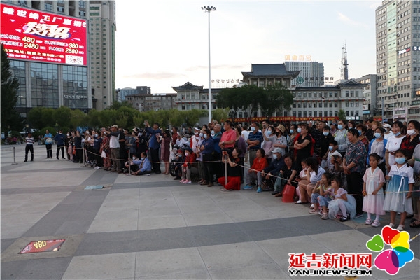 活动现场人山人海、处处是欢声笑语,聚集在青年湖广场的延吉市民们都在期待着即将开幕的文艺演出,在激动人心的鼓声中,文艺演出正式开始,来自阿里郎花艺术团的演员们用娴熟的技艺、优美的舞姿吸引了观众们的目光,由还在上小学的小朋友孙彦带来的独唱《名字叫中国》唱出了亿万华夏儿女心灵的浓缩,延边京剧协会演出的《说唱脸谱》用变化多端的变脸展现了我国灿烂辉煌的文化底蕴,时装秀表演《祝福祖国》、小合唱《红太阳照边疆》、舞蹈《祝福祖国》等精彩节目演绎出了生活在新时代的人们对祖国的美好祝愿,舞蹈《共产党恩情永不忘》、长鼓鼓点舞《没有共产党就没有新中国》在庆祝建党一百周年之际,展现出了延吉人民对党的无限热爱,现代京剧《奇袭白虎团》则带着观众回到抗美援朝硝烟弥漫的战场,歌颂了志愿军的英勇事迹,在舞蹈《红太阳照边疆》的动人表演中,整场演出落下帷幕,观众们意犹未尽,缓缓离场。