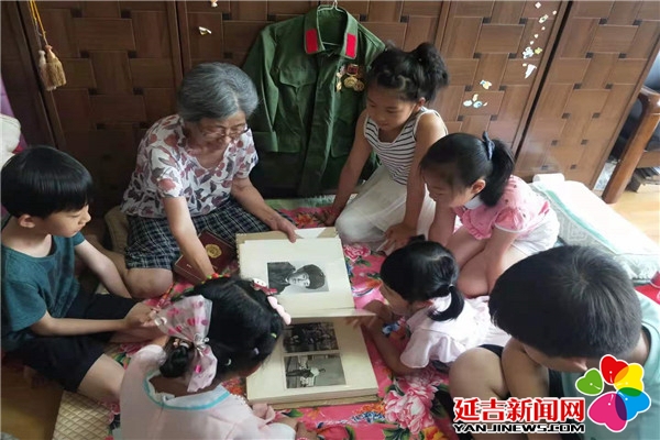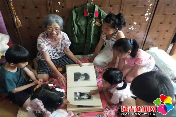 在权明淑家中,老人在孩子们的簇拥下,为孩子们讲述那段战火硝烟的时代,她作为抗美援朝志愿军三十七军的护士,目睹了战士们冲锋战场、舍生忘死的真实经历。孩子们屏神聆听,并不时发问:“英雄奶奶,您这么多‘奖牌’都是怎么得到的?我也想得到。”老人笑着说:“和敌人战斗得到的!你们长大也要做对国家有用的人,就可以得到珍贵的勋章......”随后,孩子们争相与英雄奶奶合影,留下了难忘而美好的回忆。