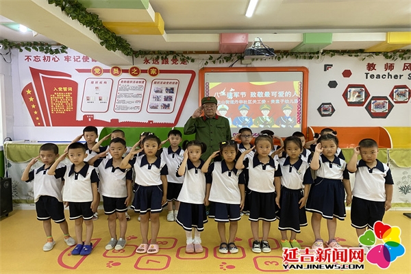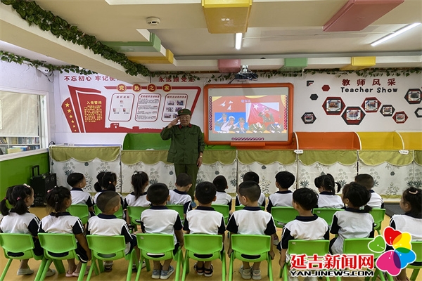 为激发小朋友们对中国人民解放军的热爱与尊敬之情,了解中国军人的坚强与无畏精神,在“八一”建军节来临之际,北山街道丹华社区关工委走进延吉市贵童子幼儿园开展“八一建军节,致敬最可爱的人”主题教育活动。