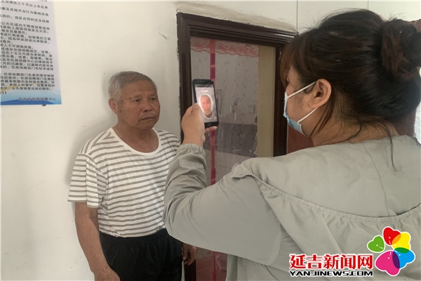 “退休金领取认证每年开展一次,以手机认证为主,大爷以后您不会操作手机,或者身体不适。您及时联系我们社区,我们再来为您认证”丹吉社区工作人员一边说,一边打开手机上的认证软件,输入两位老人的身份证号,为老人做了面部识别,完成认证。