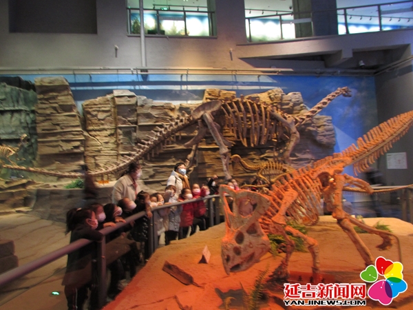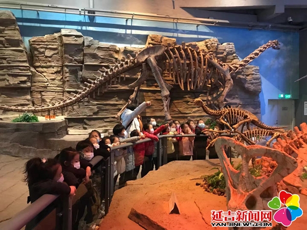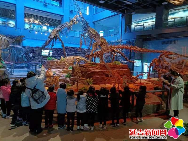孩子们一踏进恐龙博物馆就感到十分的好奇和惊喜,“恐龙好大呀!”“翼龙居然会飞,好神奇呀”“恐龙居然是从蛋里孵化出来的,太不可思议了”。面对好奇的孩子们,幼儿园老师和“五老”奶奶们向孩子们讲解关于恐龙生活的知识和延续亿年的奥秘。延吉市的恐龙动物群处于白垩纪恐龙演化的过渡时期,距今有两亿年的历史,具有极大的考古价值和科学价值。