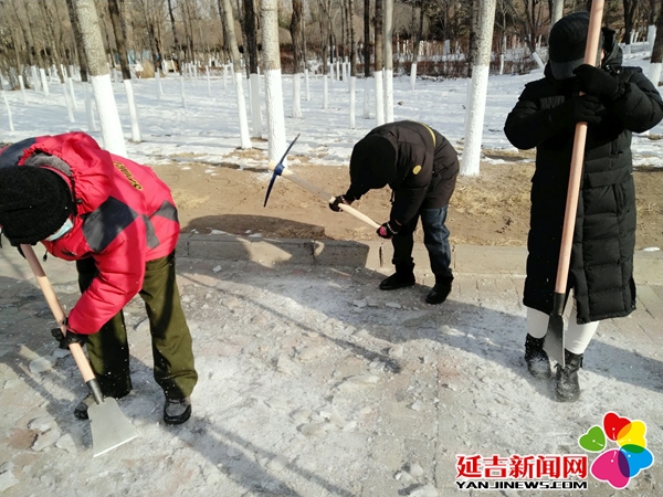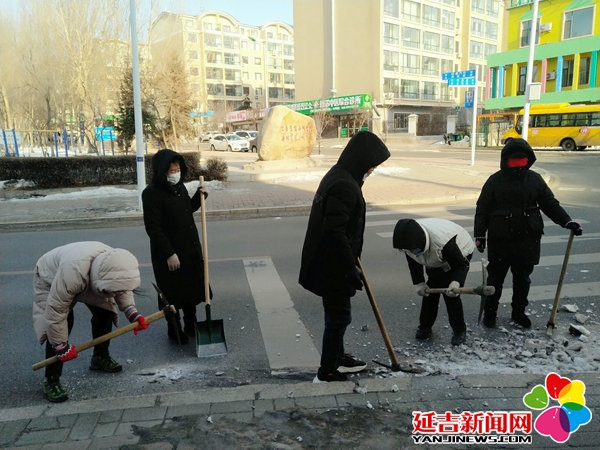 活动中,由丹虹社区党总支将北环路划分支部责任区、党员责任田,社区志愿者们戴上手套,手持铁锹、镐头等扫雪工具,你扫我铲,干劲十足。大家不顾路面湿滑,顶着寒风,干得热火朝天。经过一个多小时的奋战,大家将路边积雪清理干净,为居民铲出了一条条“安全路”。