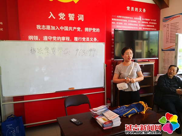 活动中,延边州金融办采用“朝汉双语”相结合的模式,由金融机构服务处金兰、金融稳定处王宏强两位宣讲员分别用朝汉两种语言为居民宣传讲解了非法集资的危害、识别非法集资的方法、常见的非法集资欺骗手段及打击非法集资相关法律法规等。宣讲员用醒目的大字在画板上写下非法集资举报电话:963099,并引领居民大声朗读多遍,熟记于心。活动现场还发放了《拒绝高利诱惑 远离非法集资》宣传折页100余份,让居民朋友们带回家,向亲朋好友发放宣传,人人宣传,家家受益,提高警惕,防患于未然。