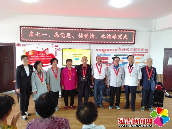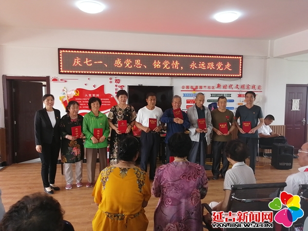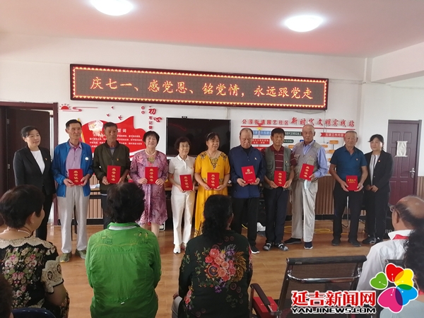 活动伊始,全体党员面向党旗举起右拳,庄严宣誓,“我志愿加入中国共产党,拥护党的纲领,遵守党的章程……”,大家怀着一颗激动和感念的心,重温入党誓词,一字一句无不透露出对党深厚的情感。随后,园艺社区书记郑昕郑重地为在党50年的老党员们戴上光荣纪念章,并向他们致以由衷的敬意,感谢以他们为代表的老党员一直以来对党的忠诚和热爱,对党和国家的社会主义建设的倾心付出,以及对近年来社区工作的支持。紧接着,郑书记为在社区各项工作中做出贡献的党员同志颁发“优秀共产党员”荣誉证书,并感谢他们长久以来的默默付出和无私奉献。最后,园艺文工团与社区巾帼志愿者为大家带来了《我和我的祖国》、《浏阳河》、《唱支山歌给党听》等一首首经典红色歌舞节目,他们用慷慨激昂的歌声和精彩绝伦的表演,为观众送上了一场红色主题盛宴。