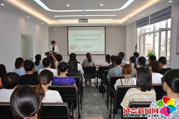 7月6日下午,延边大学图书馆赴延吉市党群服务中心开展“延边大学图书馆流动分馆图书捐赠暨图书馆志愿者协会入驻仪式”,延边大学图书馆馆长崔香淑、公园街道党工委副书记、办事处主任戚霞、延吉市党群服务中心主任林松淑及各社区书记及居民代表50余人参加了活动。