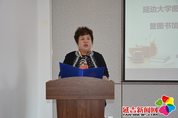 活动首先由公园街道党工委副书记、办事处主任戚霞致辞,戚霞表示,感谢延边大学图书馆带着期刊读物来到公园街道,援建延吉市党群服务中心图书室,公园街道12个社区将充分利用这批图书资源,组织开展丰富的读书活动,引导市民多读书、读好书,打造书香型社区,切实提高社区居民生活品质,为建设“书香社会”添砖加瓦。