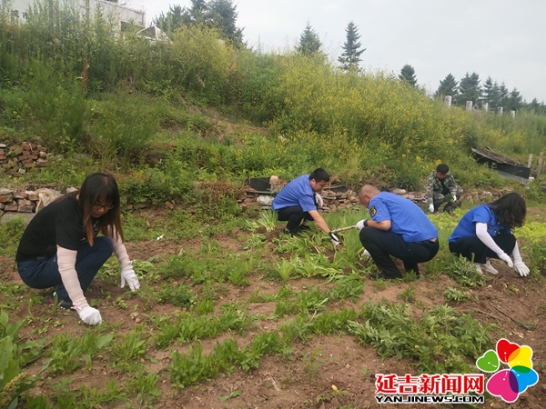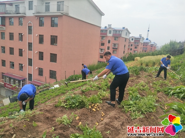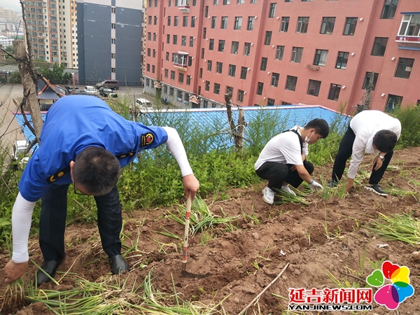 近日,延吉市公园街道园城社区联合延吉市行政执法局公园大队对水映玉楼种菜现象进行了清理整治,延吉市公园街道办事处副主任李昕、公园街道城建科工作人员、延吉市行政执法局公园大队及社区工作人员30余人参加。