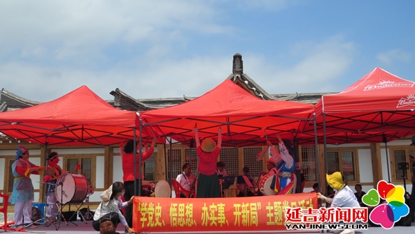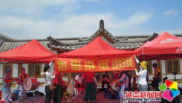 为庆祝中国共产党成立100周年,传承和发扬党的光荣传统和优良作风,营造爱党、爱国、爱家乡的浓厚氛围,7月14日,延吉市公园街道园新社区新时代文明实践站组织社区老年协会艺术团、社会组织、社区党员30余人前往延吉市朝阳川太兴红色小镇开展“学党史、悟思想、办实事、新开局”主题党日活动。