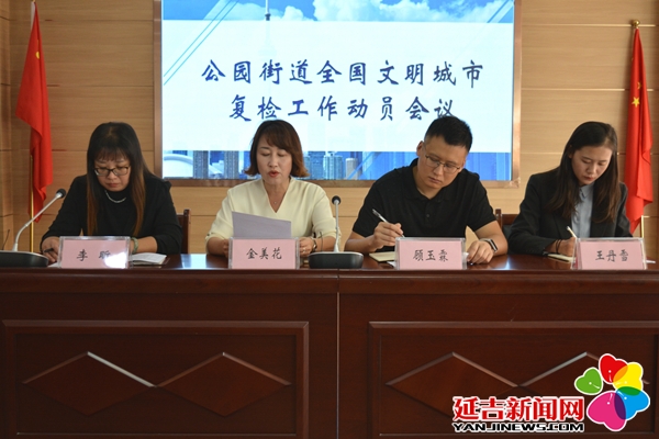 为顺利迎接全国文明城市复检工作,凝聚全街力量,完成复检任务,9月2日上午,延吉市公园街道召开全国文明城市复检工作动员会议,会议由公园街道办事处主任李昕主持,公园街道党工委书记金美花,公园街道纪工委书记、监察办主任顾玉霖,公园街道办事处副主任(挂职)王丹雪,街道干部、各社区班子成员70余人参加此次会议。