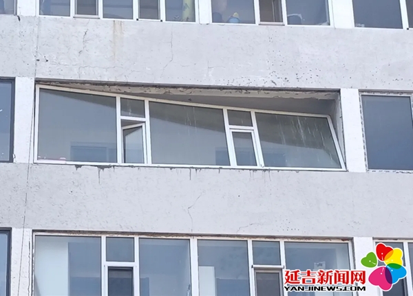 居民楼窗户倾斜险坠落 白川社区紧急排险