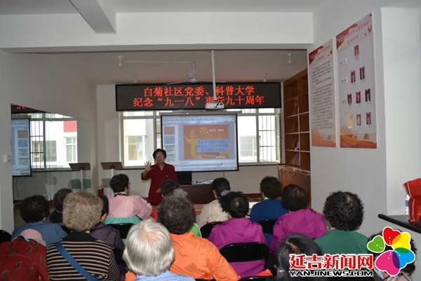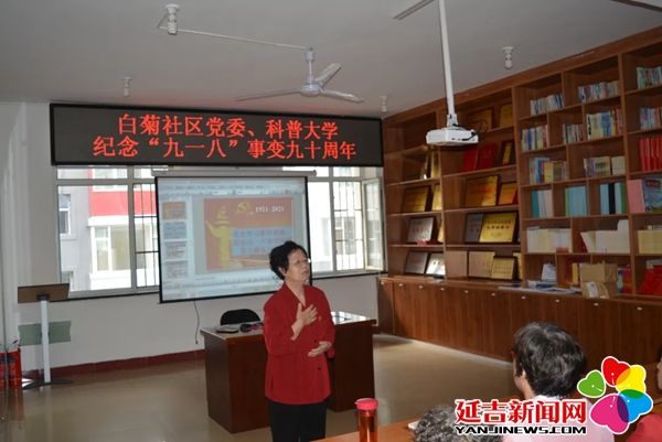 为纪念“九一八”事变,近日,河南街道白菊社区在开展“勿忘国耻 九一八事变九十周年”主题教育活动,由白菊社区科普大学校长安今淑讲课。