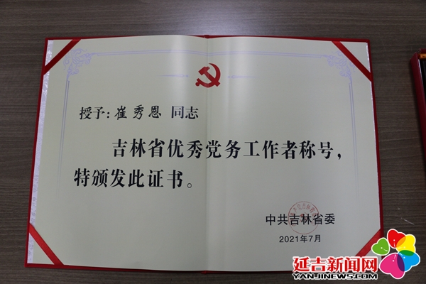 延吉市建工街道“双喜临门”!街道党工委喜获“吉林省先进基层党组织”、崔秀恩喜获“吉林省优秀党务工作者”
