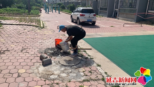 该情况一经发现,社区城建副主任南贵锋立刻到现场查看,联系施工队进行清掏。维修人员清理出塑料袋等杂物后,再进行管道污水抽排。由于此下水井盖是水泥定制,清掏后需要人工封堵井盖,宋益生主动找来水泥物料,先将井盖围边处垫上胶皮,增强井盖咬合稳定性,再用水泥封堵井盖口,最后将井盖周边及彩砖连接处地面抹平,整个维修过程历时两天。延青社区“想居民之所想,急居民之所急”的服务态度,让百姓连连称赞。