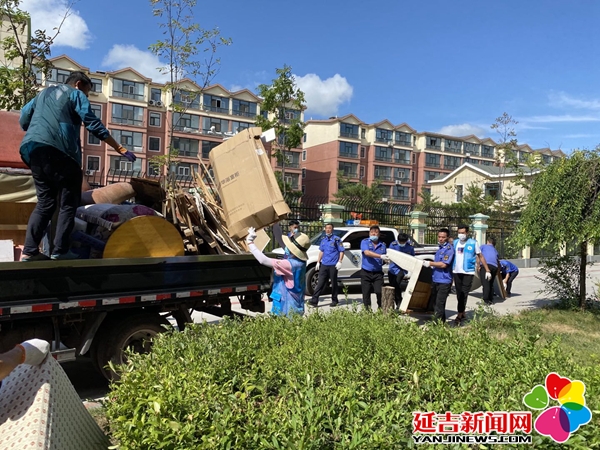 活动中,对东明小区乱堆乱放现象进行整治。志愿者带着手套,迎着炎热的天气,不怕脏、不怕累,有的湿了衣服,有的脏了裤子。过往居民看到后,也纷纷加入其中,大家齐心协力,干劲十足,经过两个多小时的奋战,共清理乱堆乱放40余处,废旧沙发30余套。