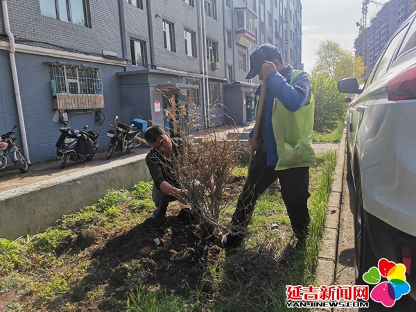 本次活动,社区干部、包保单位延边州地方志及居民志愿者20余人参加了本次活动。活动现场,全体人员手握铁锹分工协作,拉线校准、扛苗放苗,挥锹刨坑,扶苗踩土,将每一道工序都做得一丝不苟。在种植现场,一片繁忙景象。大家发挥志愿奉献精神,不怕脏、不怕累,个个奋力争先。挥动铁锹,挖坑、栽种、培土、浇水,相互配合,将土壤裸露的地方翻新,种植上花卉,春天的气息扑面而来。植树活动从下午2点持续到4点结束,植树后,大家不忘将原先的死树苗进行彻底清理,做到植树、人居环境整治两手齐抓共管。