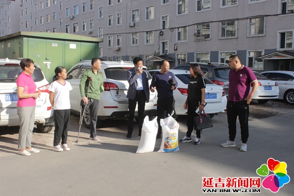 9月29日下午爱心人士杨光女士和张庆林先生来到了资助对象张子漫的小区,带来了米、面、肉等物资。乖巧懂事的子漫早早就来到楼下迎接。同时,子漫的父母也等候多时,感谢爱心人士并邀请大家上楼坐坐。