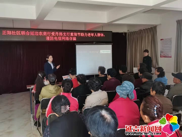 正阳社区联合州地方志、延边农商行爱丹路支行开展重阳节助力老年人群体,反电信诈骗宣传活动