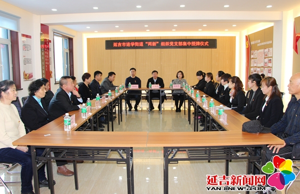 为了加强进学街道“两新”组织党支部标准化规范化建设,不断提升街区“两新”党建工作水平,进学街道党工委于12月2日上午在社会组织党建服务中心举行了“两新”组织党支部集中授牌仪式。街道党工委书记王海鹏,党工委副书记、政法委员全红华,市委组织部组织四科科长崔传民以及有关社区副书记、新成立“两新”组织党支部负责人共19人参加仪式。