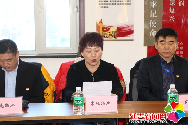 仪式由街道非公党建指导员马立军同志主持。会上, 街道党建工作办公室主任董艳仙同志宣读了《关于同意成立延边常胜物业管理有限公司等7家党支部的集中批复》,与会领导为新成立的党支部进行授牌,新成立的延边常胜物业有限公司党支部书记李延秋进行表态发言。