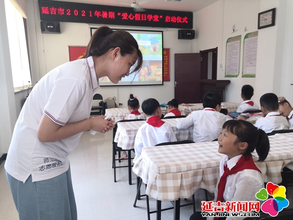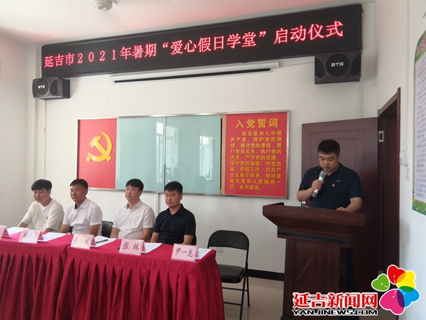 为更好的帮助留守儿童、外来务工家庭子女愉快的度过漫长的暑假,让孩子们感受来自社会的关爱,经团市委研究,携手延边大学师范学院共同开展为期1个月的“爱心假日学堂”暑期志愿服务活动, 7月28日,在新兴街道民兴社区举办开班启动仪式。延边大学师范学院团委书记金靖斌、共青团延吉市委副书记张林、新兴街道纪工委书记车明日、新兴街道民兴社区书记尹一龙、新兴街道民和社区书记张成龙以及参与“爱心假日学堂”活动的延边大学师范学院青年志愿者和学生、部分家长代表参加了启动仪式。