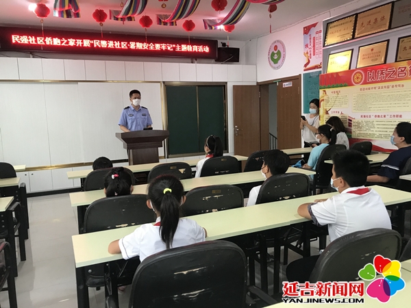 为进一步加强辖区青少年暑期安全,增强暑假期间青少年安全意识,营造和谐、健康、安定、和谐的环境。8月10日下午,新兴街道民强社区侨胞之家联合新兴派出所开展“民警进社区•暑期安全要牢记”主题教育活动。