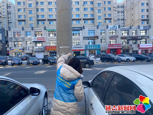 活动中,大家身着蓝马甲,在零下十几度的寒冷天气中,对辖区内商户、老旧小区、单元楼道等地进行巡查,针对门前乱堆乱放、占道经营和违规停车的现象进行劝导。同时,对小区宣传栏、电线杆粘贴的小广告进行清理。