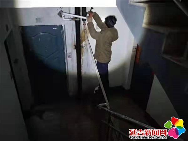 了解情况后,丹春社区工作人员第一时间赶到现场核实情况,并立刻反映给延吉市集中供热有限责任公司的维修人员。随后,维修工人立即到达现场,经检查发现,由于冬天天气较冷,居民出行时未及时关闭楼道门,导致供暖管道被冻裂。维修工人立刻关闭暖气总阀门,经过一个多小时的抢修,供热管道修复完成,居民楼恢复正常供暖。