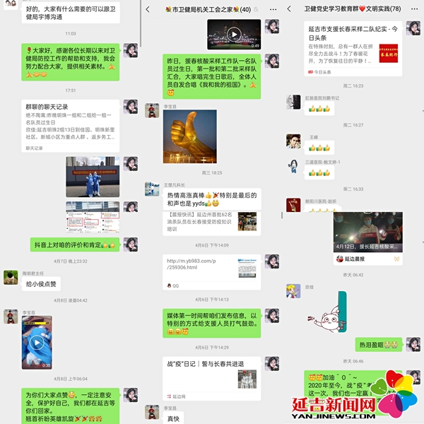 巾帼也有男儿志,赤胆雄风重任担。4月3日,延吉市卫生健康局成立第一批支援长春核酸采样工作队赶赴长春。时间紧、任务重,为了缓解队员们的紧张压力,她积极与工作队联系,实时与队员们互动,为他们打气鼓劲,同时,搭好支援工作队和新闻媒体“联心桥”,第一时间归纳整理工作队支援动态和感人瞬间,转发给市委宣传部,并及时向工作队反馈媒体及长春群众的肯定和赞扬。“每一名队员背后,都有一段感人故事,不负青春梦想,不负使命担当,为逆行而战的队员们传递希望与坚守、温暖与力量,这就是我想认真做好抗疫宣传的意义”。