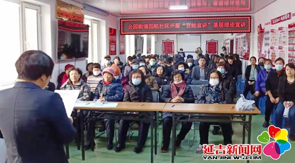 为进一步推动十九届六中全会精神深入基层、深入群众、深入人心。近日,公园街道园航社区开展“百姓名嘴”宣讲活动,党员、居民代表50余人参加此次讲座。