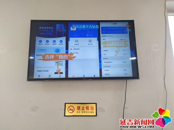 恒润社区积极利用窗口服务优势,在为民服务大厅安排工作人员负责反诈工作,抓住各窗口业务办理等待间隙,一对一向每一位居民讲解预防电信网络诈骗相关知识,引导和帮助办理业务、参加活动的居民下载注册“国家反诈中心”APP。此外,社区还在为民服务大厅宣传电视上循环播放“国家反诈中心”APP使用安装解说视频,达到“声入人心”的效果。