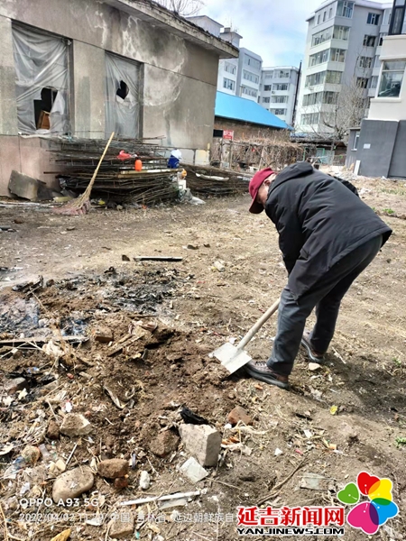 当日上午,5名志愿者分工合作,拿着铁锹、扫帚清理垃圾和杂草,最后在附近张贴了保持环境卫生的标识,提醒居民不要随意丢弃垃圾。清理之后的院内焕然一新,为社区居民创造了一个干净、整洁的生活环境。杨丽珍老人表示:“社区卫生环境需要大家的共同努力才能变得更好,现在大家都在为了疫情防控工作加班加点,我们就尽自己的一份力量来帮助社区。”