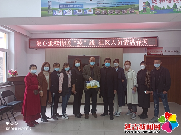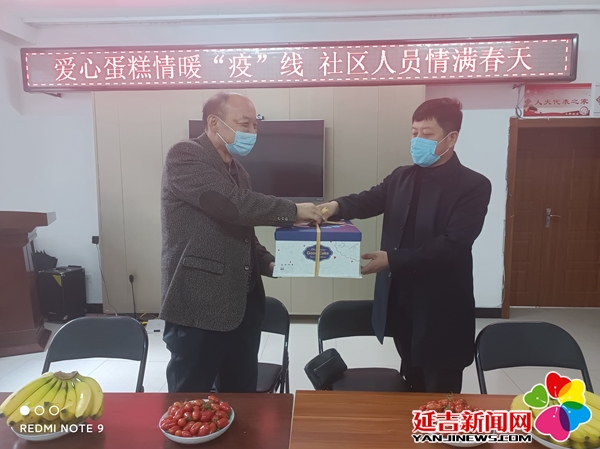 4月9日,进学街道文新社区驻街商户方圆练歌厅经理王宝辉提着精心定制的生日蛋糕,敲响了文新社区的门。亲手将这份“甜蜜”的生日礼物送到了过生日的社区防疫工作者刘传发的手中。