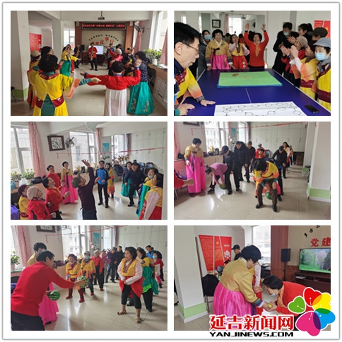 【民安】活动以朝鲜族传统游戏——“掷柶戏”拉开帷幕。掷柶戏是朝鲜族重要的民俗活动,距今已有2000多年的历史。通常有两名以上参加者,通过掷出四块特制的木板,来决定各自在棋盘上所走的步数。社区新时代文明实践站的志愿者身着鲜艳的民族服装,分成两组进行游戏。现场欢笑、掌声此起彼伏,大家玩得不亦乐乎,脸上都洋溢着喜悦的笑容。传统游戏结束,紧接着“抢气球”“胯下传球接力跑”等游戏轮番上阵,将节日氛围推向高潮,社区为游戏获胜的参赛队伍颁发奖品。最后,大家在一曲曲动听的旋律中跳起优美的朝鲜族舞蹈,欢庆元宵佳节。