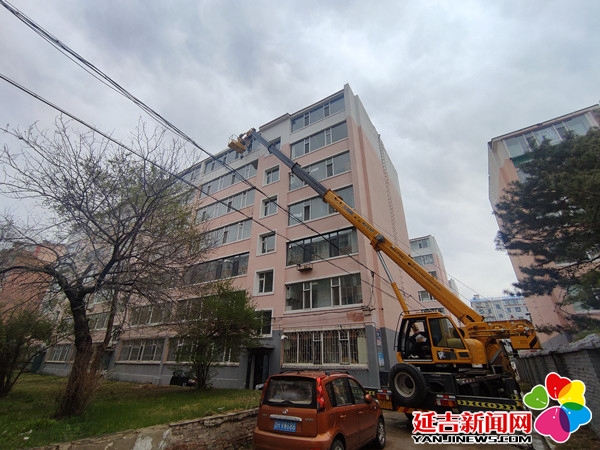 社区党总支书记张成龙和城建负责人聂传宇立即联系维修吊车和工人进行抢修,聂传宇指挥吊车进场,工人依次乘坐吊篮,将楼顶摇摇欲坠的铁皮剪掉。在作业期间,社区城建负责人又发现楼顶有多处铁皮存在松动的情况,立即引导工人将松动的铁皮固定好,成功将隐患排除。附近栋楼的居民看到吊车施工,连连感谢道:多亏社区及时来维修,每次刮大风,我们就担心砸到人。