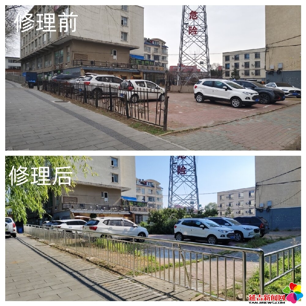 为保障居民出行安全,社区工作人员第一时间在破损区域设置警示围挡,并张贴安全提示。同时迅速联合丹春社区吉行军志愿服务协会,协调辖区爱心企业延吉市吉艾斯科技有限公司,免费更换新的白钢护栏。维修团队采用“分段拆换”作业法,全面更换了18米长的锈蚀围栏,为居民筑起安全屏障,消除安全隐患。