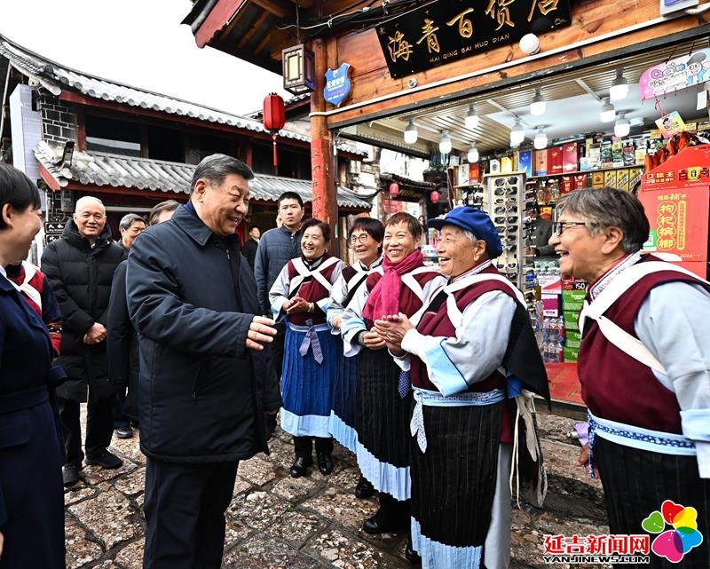△2025年3月19日,习近平总书记在云南丽江古城考察时,与当地居民亲切交流。
