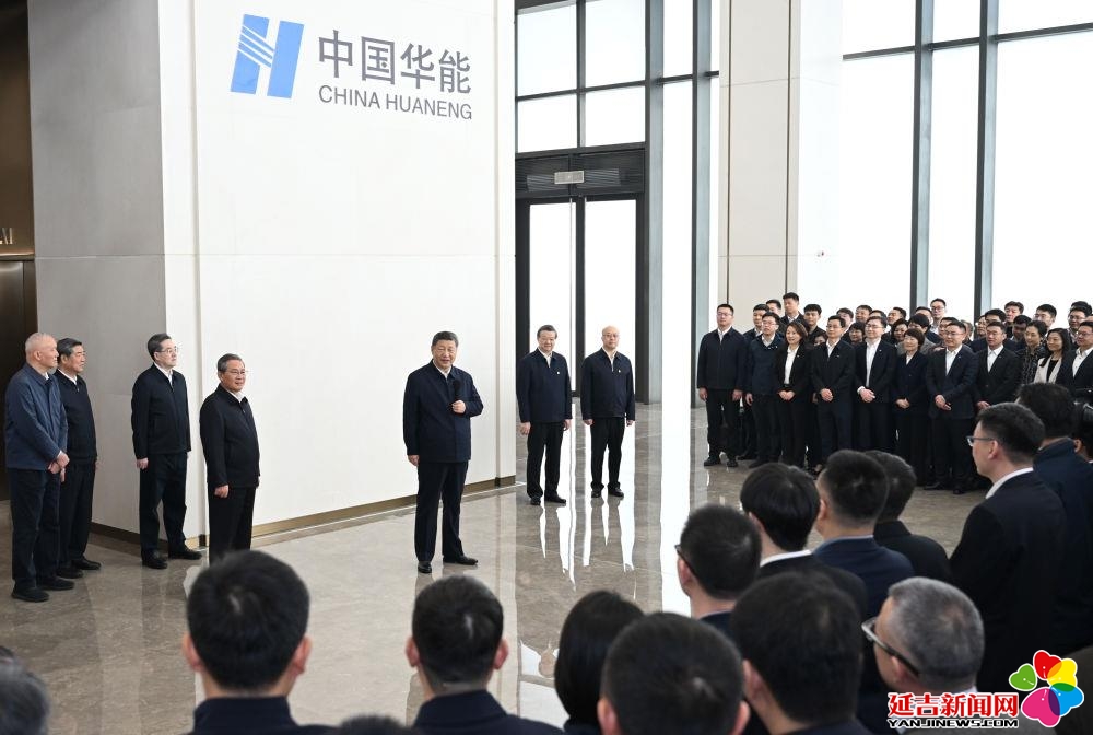 在中国华能集团有限公司一层大厅,习近平总书记同雄安新区入驻和在建疏解单位干部职工代表亲切交流,询问大家的工作生活情况,肯定大家为新区建设发展付出的努力,希望他们扎根新区沃土,积极奉献聪明才智。总书记说:“大家要为做雄安人感到自豪,一马当先、蹄疾步稳地干事创业,共同创造雄安美好未来。”