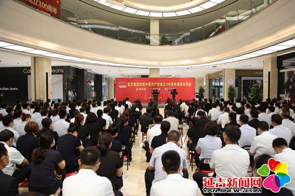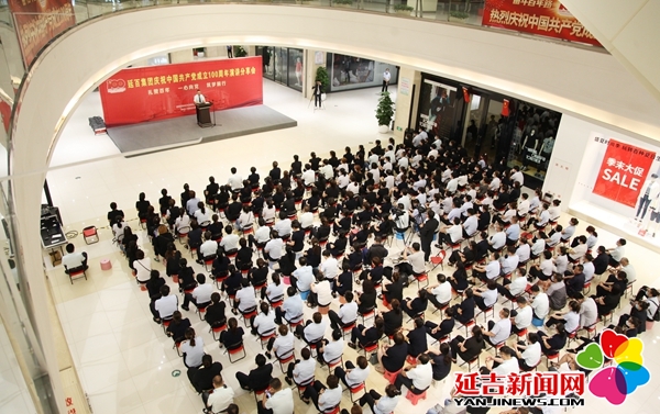 6月29日上午,延百集团党委在百利城一楼大厅举办庆祝中国共产党成立100周年演讲分享会。延百集团党委书记、董事长杜友兰等企业高管和两楼及市内门店的党员、管理人员、积极分子近300人到场参会。
