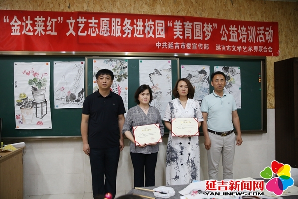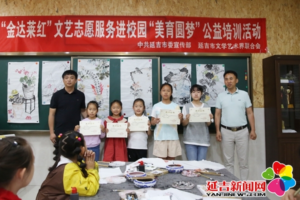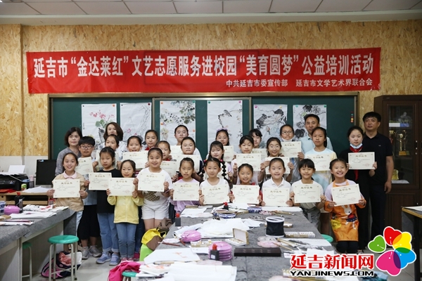 据了解,为了让更多的青少年触摸中华文化脉络,吸取中华文化艺术的精髓,延吉市文联在中央小学、河南小学开展了“美育圆梦”文艺培训志愿服务活动。活动期间,由美术、书法协会成员担任授课教师,每周深入两所学校免费开展一次国画、书法培训,并以“传承经典 美育先行”为教学理念,推广中国传统文化,提高青少年爱国情怀和艺术修养。截至目前,两所学校均已授课12节,大部分学生爱上了美术、书法,坚持创作,真正实现了从“送文化”到“种文化”的转变。