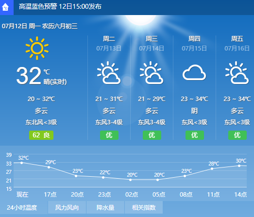 州气象局15时发布高温蓝色预警 最高温将超32℃