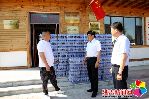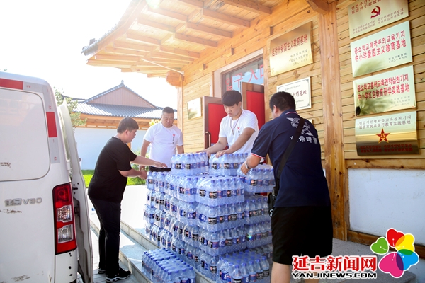 得知此情况后,在延吉市新时代文明实践中心的组织下,延边蓬莱爱心协会成员单位鑫德坤烧烤串城负责人胡宝刚带领企业员工为在太兴红色小镇做服务的工作人员们送去了100箱矿泉水,并叮嘱大家要注意防暑降温。