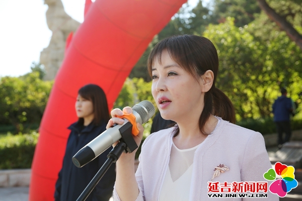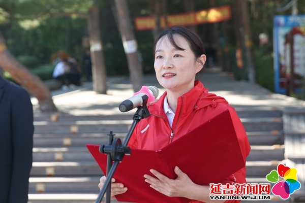 朴清梅宣布登山比赛开始 杨婷婷 摄