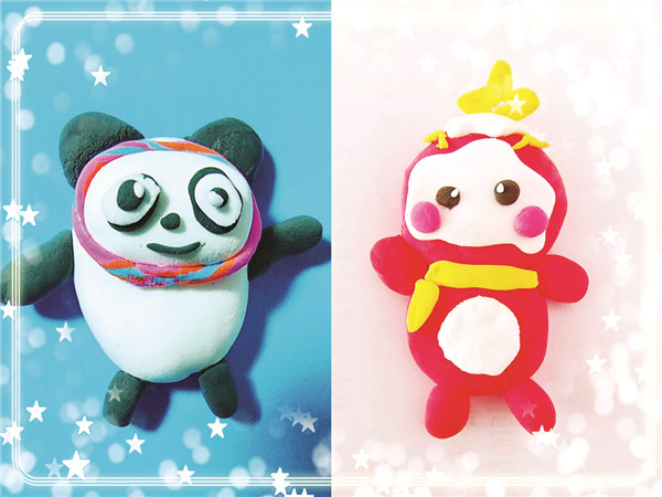 市民自制“冰墩墩”“雪容融”为奥运加油