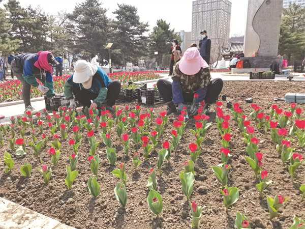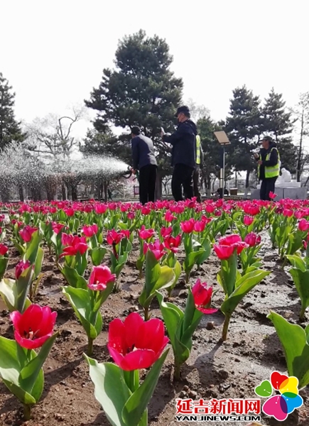 延吉公园立体式春季花卉园即将竣工 7万株郁金香紫罗兰五一怒放