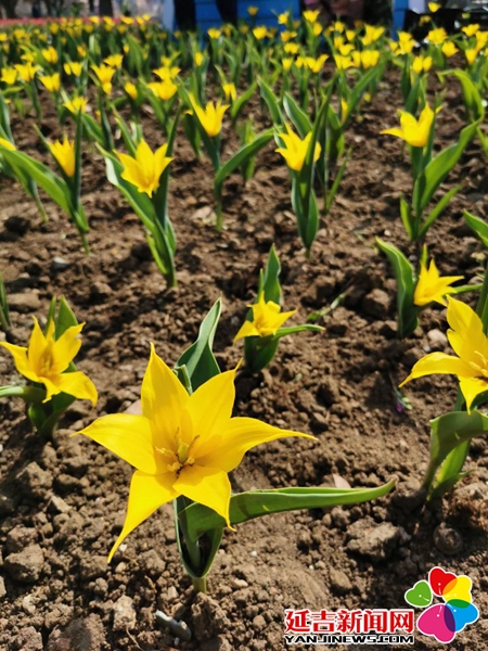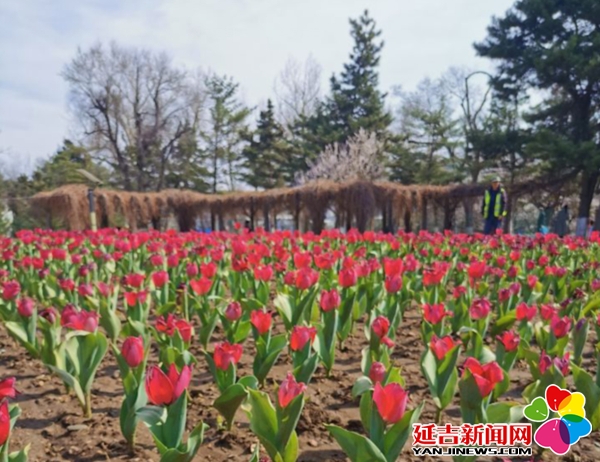 五一前夕,百花盛开的延吉人民公园又添一处欣赏郁金香花海的立体式春季花卉园。