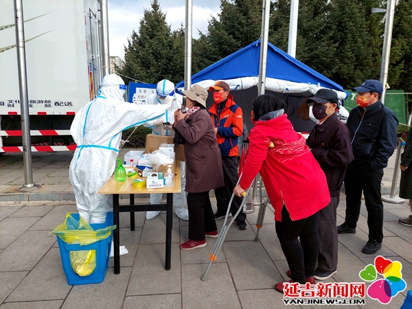 5月2日,延边州生态环境局延吉市分局副局长李文华,科员金波、王君、宋红兰一大早就来到了金达莱广场西侧核酸采样点,扫码、测温、维护现场秩序……他们各司其职,开展一天的防疫工作。面对天气阴冷、人多的情况,他们没有丝毫怨言,义无反顾坚守岗位。