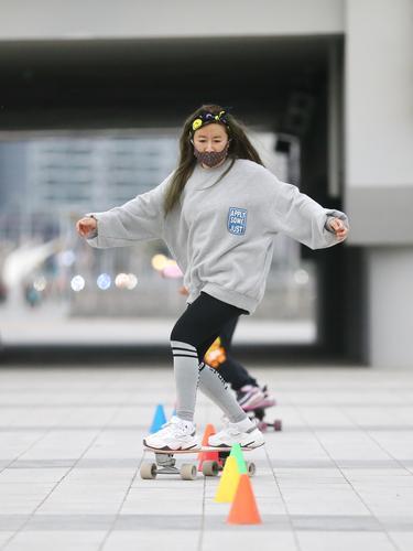 陆地冲浪板运动在延吉悄然兴起,它融合了雪地单板和滑板技巧,不受季节限制。炫酷的技巧、潇洒的动作深受青年人的喜爱。图为延吉陆地冲浪板爱好者。