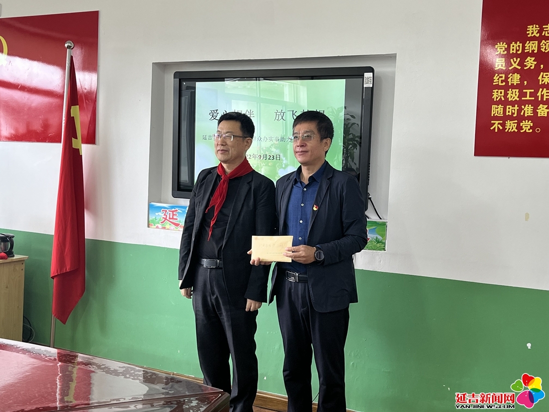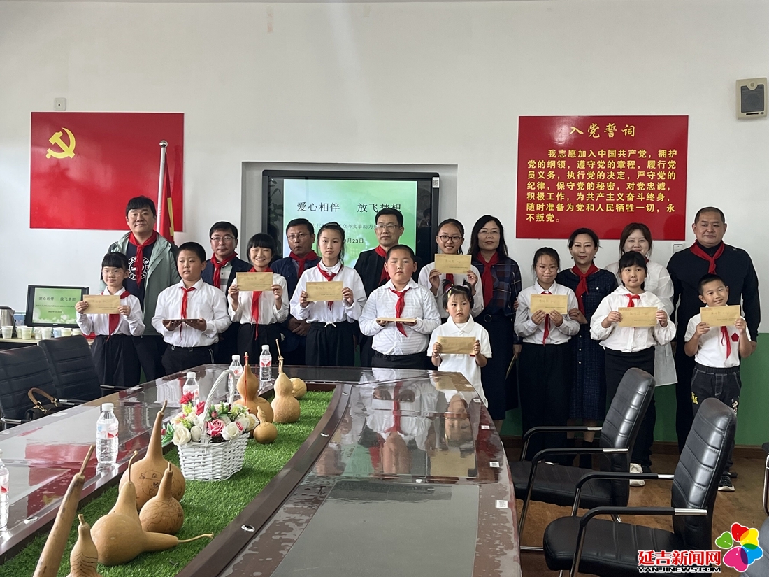 延吉新闻网9月23日讯(记者 金玲慧)9月23日,在延吉市依兰镇锦城小学举行“爱心相伴, 放飞梦想”捐赠仪式,延吉市人大城建团和民侨团的代表们为学生献去爱心。